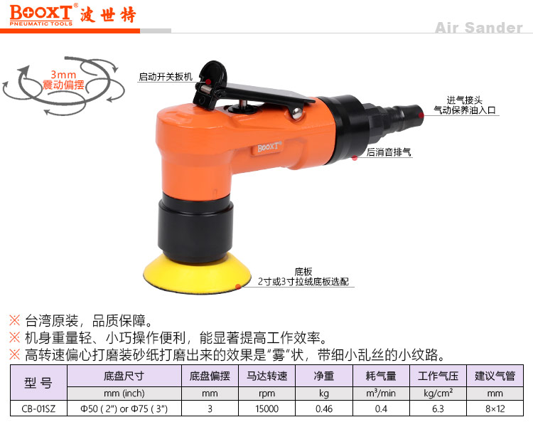 東莞強(qiáng)勁五金工具有限公司提供臺(tái)灣BOOXT波世特氣動(dòng)工具,氣動(dòng)偏心打磨機(jī)CB-01SZ廠家直銷,首件享特價(jià)。咨詢熱線:4008301980