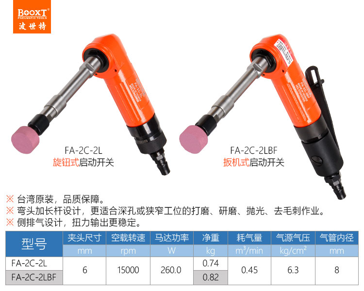 東莞市強(qiáng)勁五金工具有限公司提供臺(tái)灣BOOXT波世特品牌氣動(dòng)工具,風(fēng)動(dòng)深孔打磨機(jī)FA-2C-2LBF廠家直銷(xiāo),首件享特價(jià)。咨詢熱線:4008301980